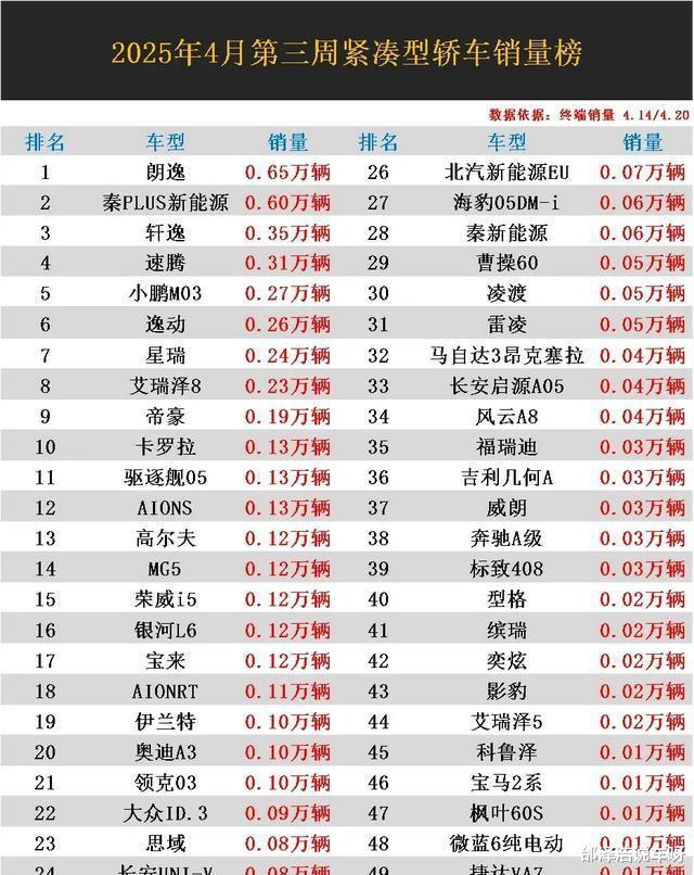 2025年4月第三周的紧凑型轿车销量榜单,那就是一个风向标,它告诉我们,中国汽车市场,正在发生着深刻的变化。